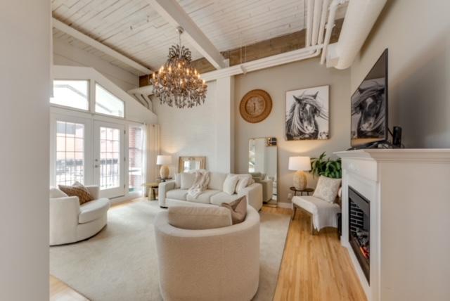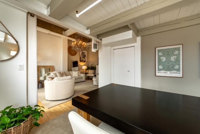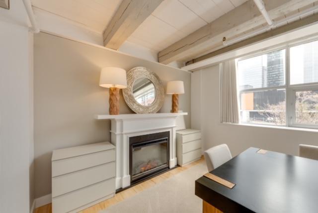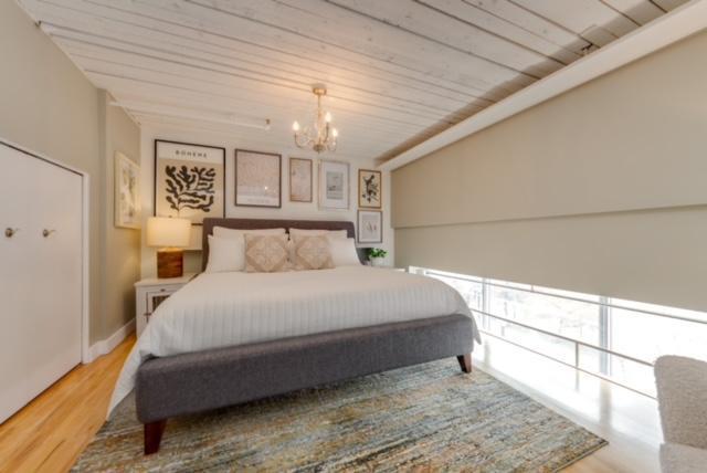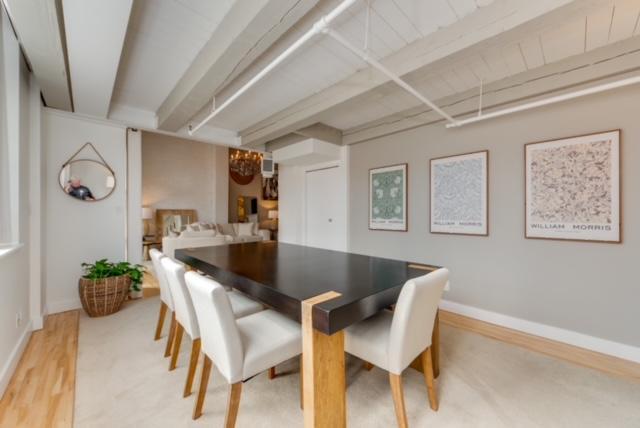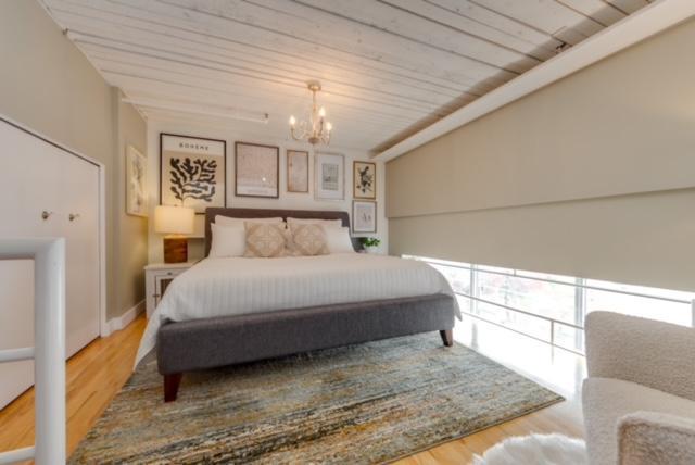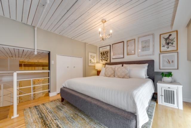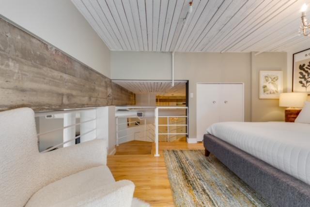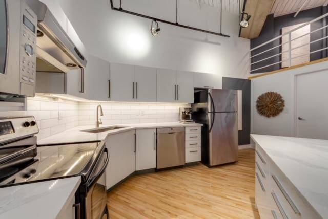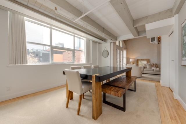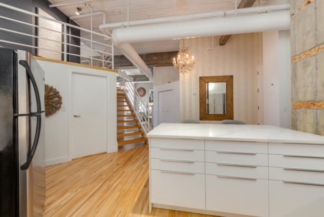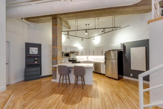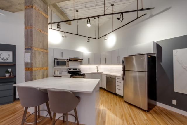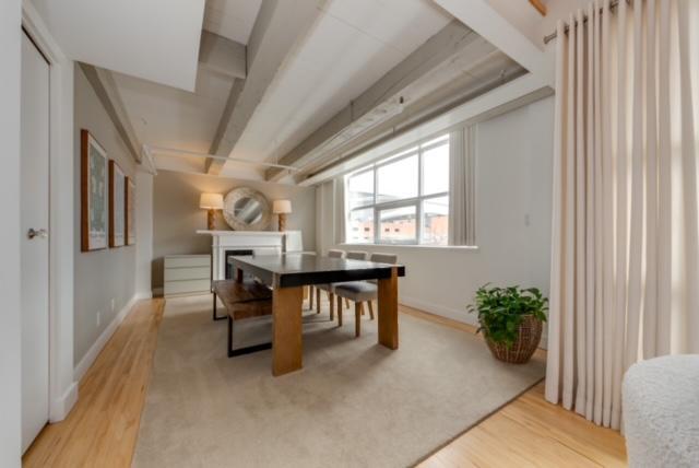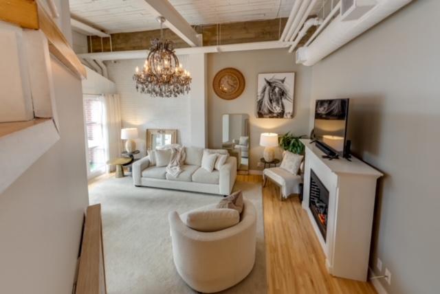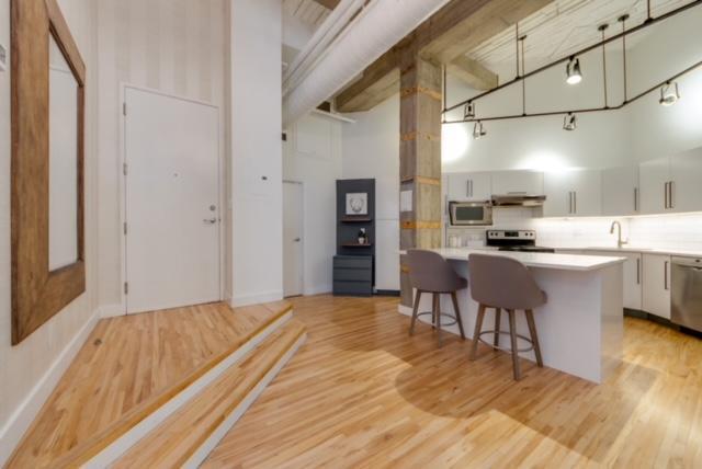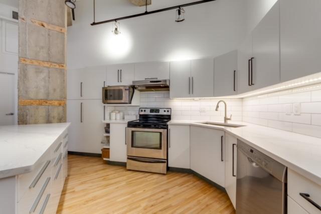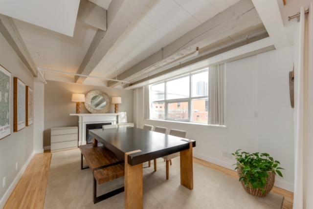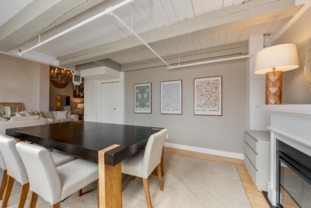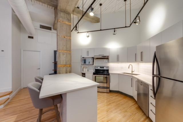 Offering 1287 sq ft of luxurious living space, you’ll enjoy a truly unique, flexible floor plan - perfect for the busy executive or downtown couple! Step inside and you’ll find a sleek kitchen with island, refinished original hardwood, textured brick, exposed beams, soaring 14 foot ceilings & large living room with fireplace.
